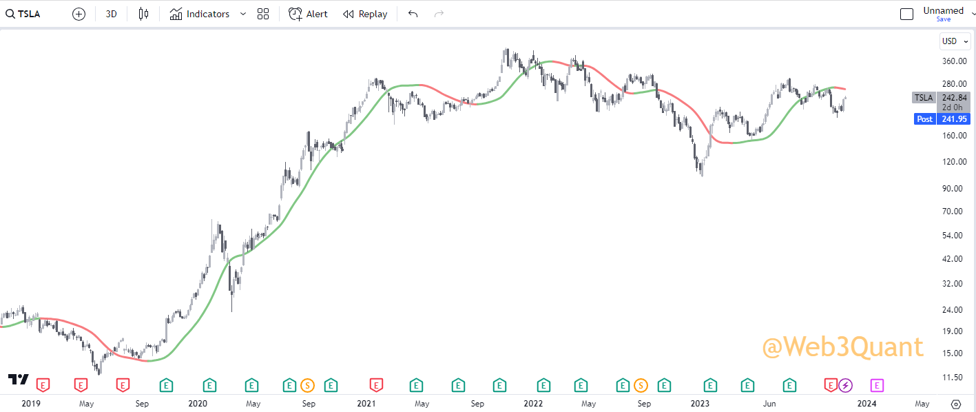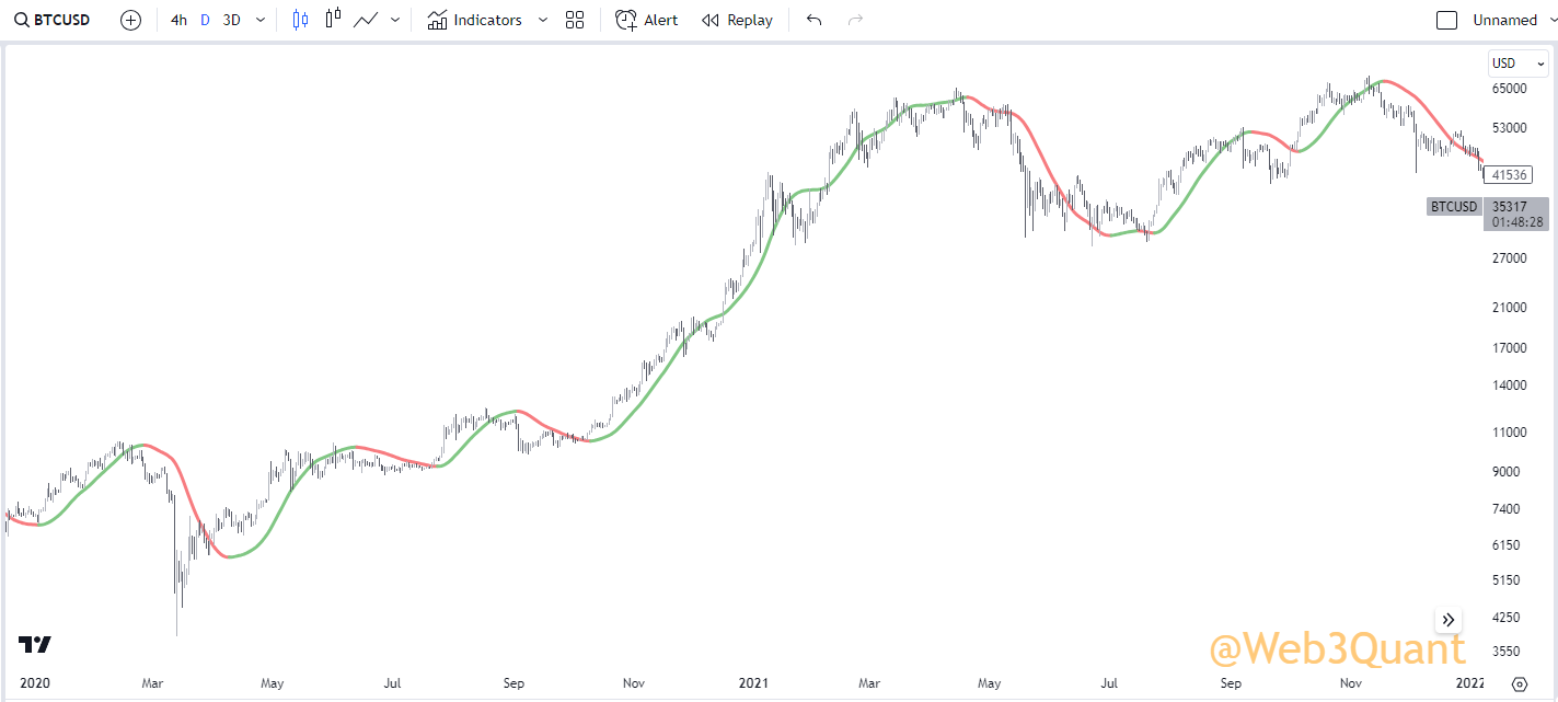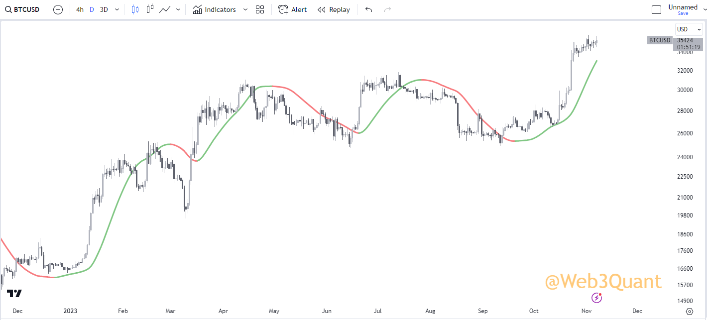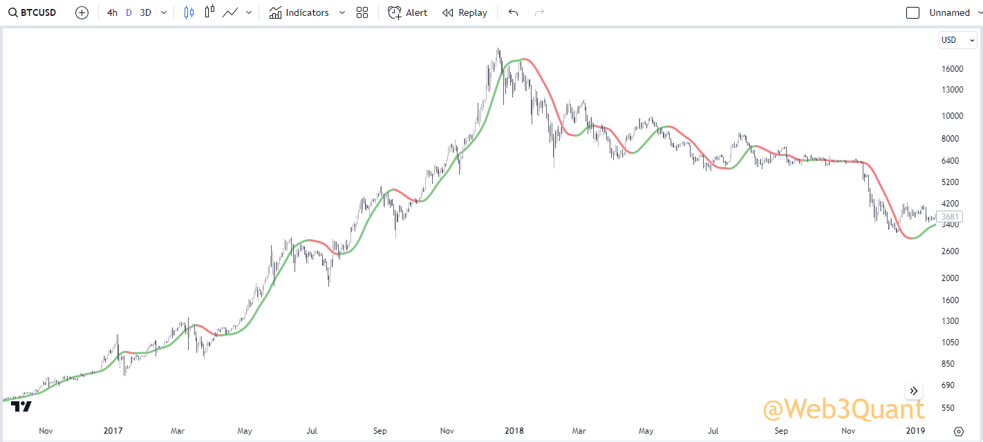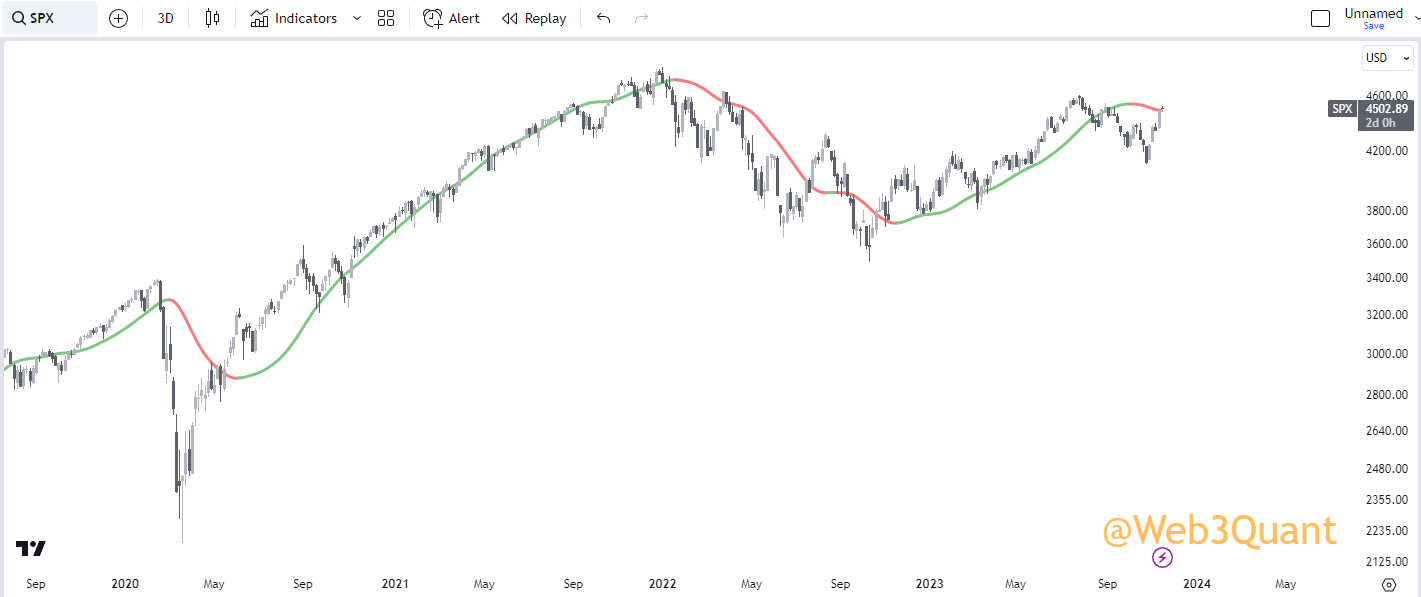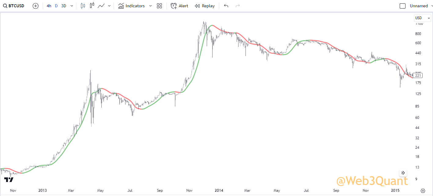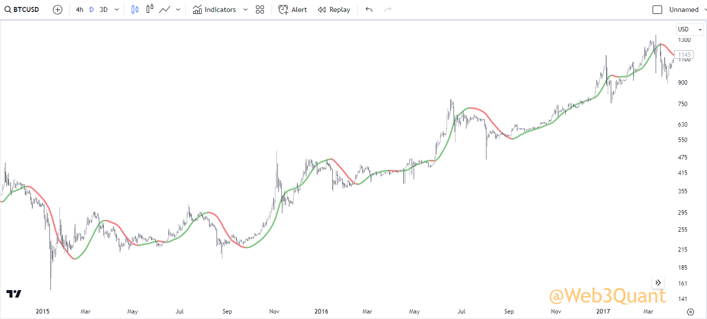 NOTE: This is the exact same indicator you saw in earlier with the same settings. Just run on a 3Day timeframe.