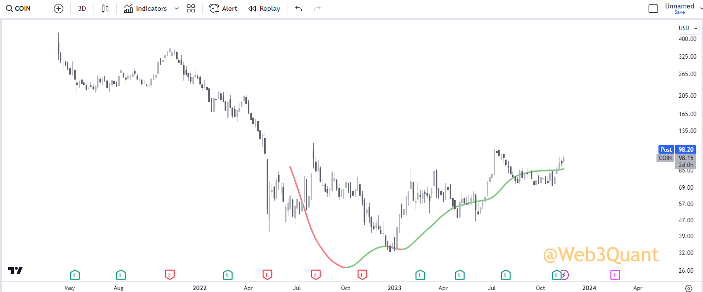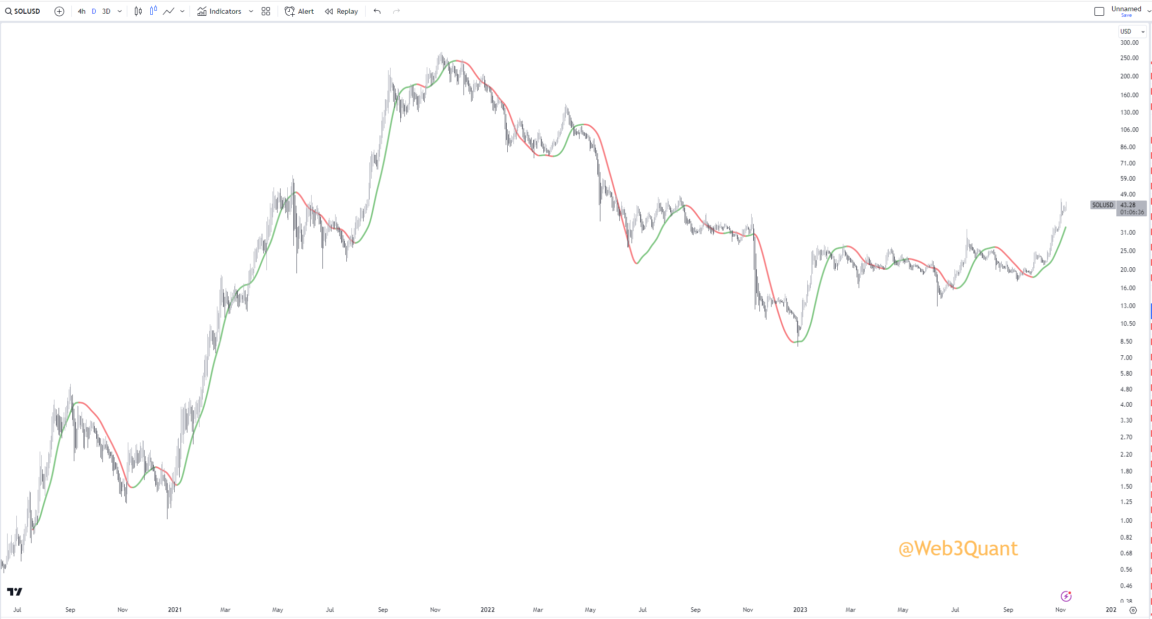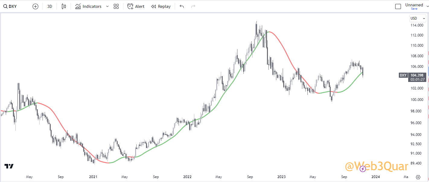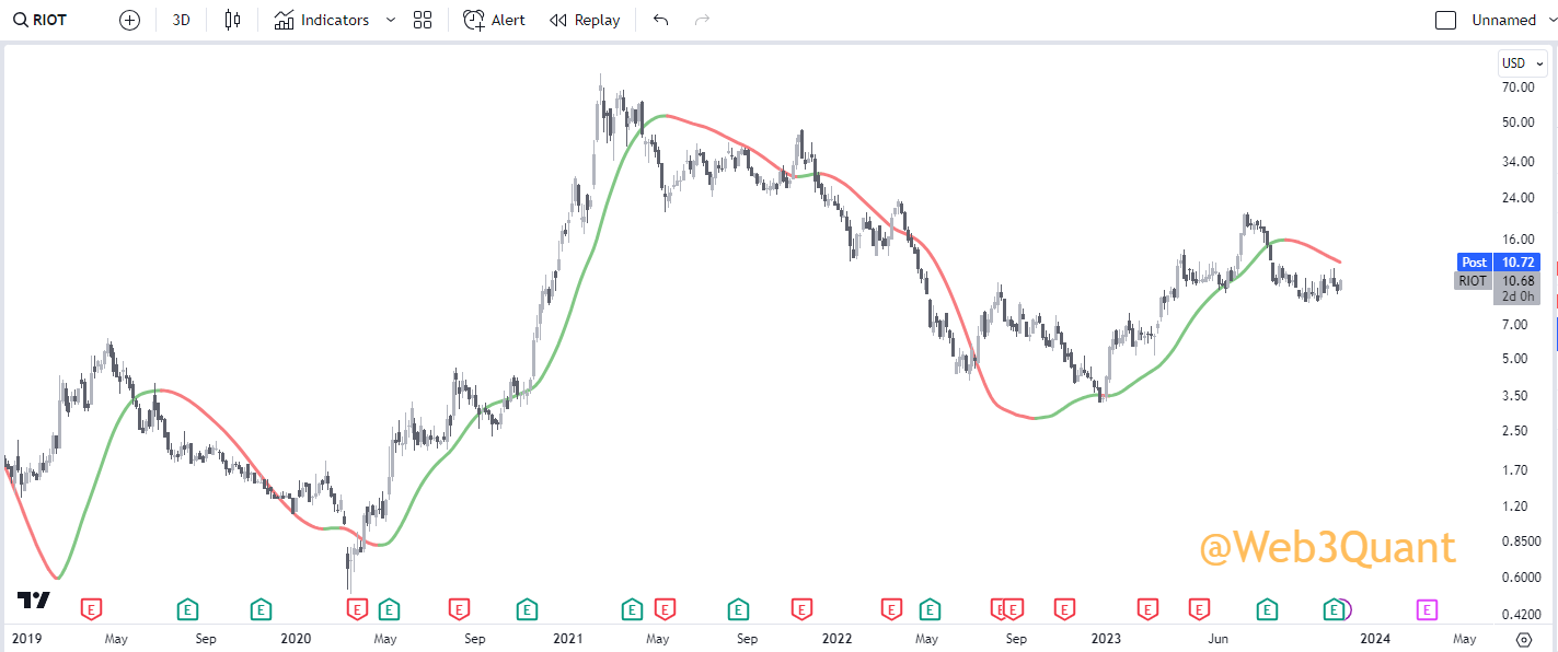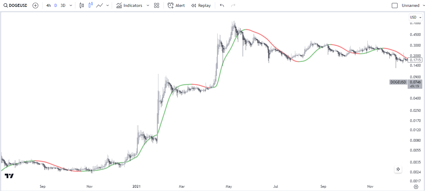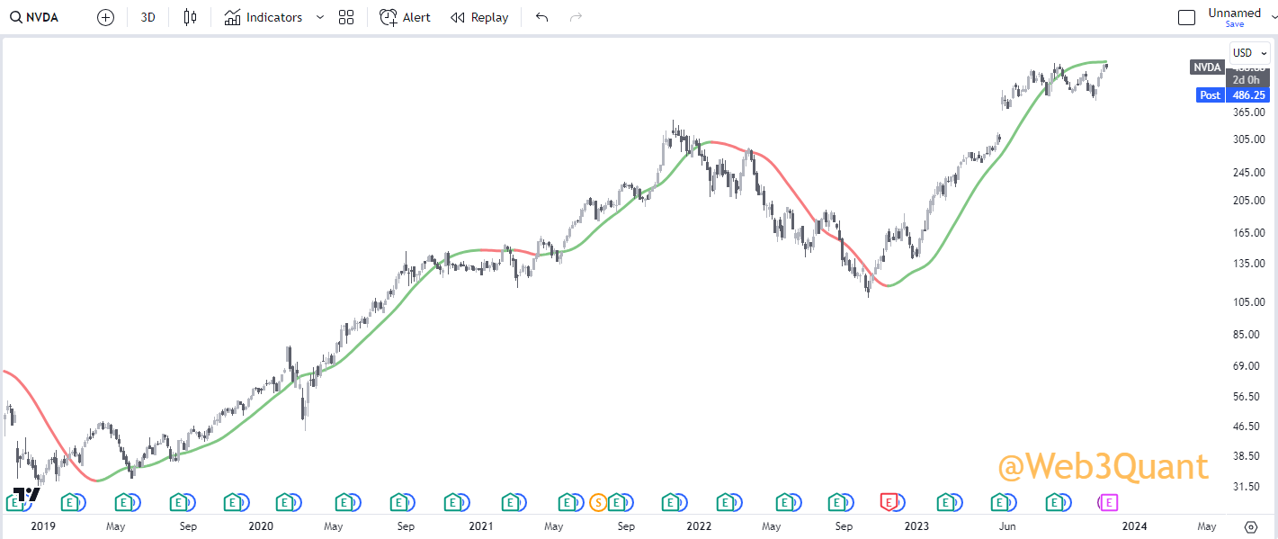 NOTE: This is the exact same indicator you saw in earlier with the same settings. Just run on a 3Day timeframe.