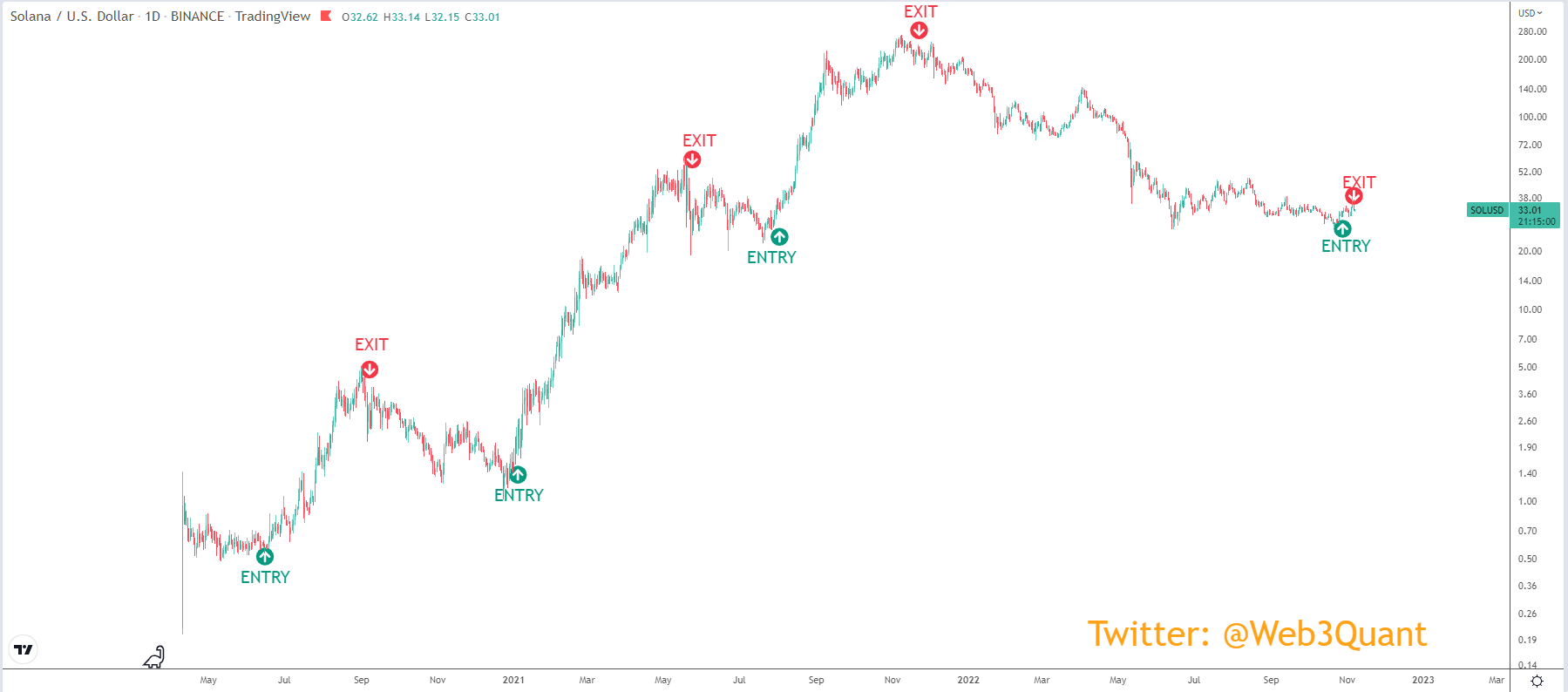 Below are the Models signals on BTC, ETH, and Solana from 2020 to date and all the coins the model is long on. I have been publishing this every week since I went public in May and will continue to do so.