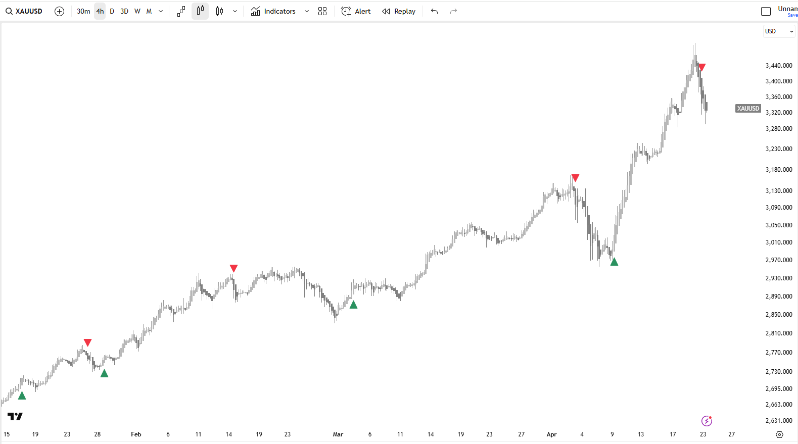 when he calmed the markets saying no intension of firing Powell nor tariffs will be as high on china.