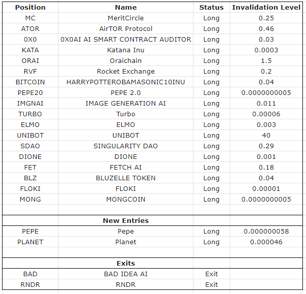 Model continues to be long the majors with invalidation levels