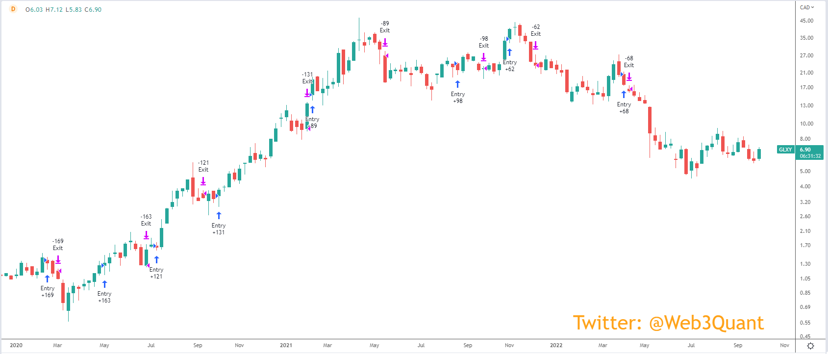 Below are the Signals from my Quant model on Galaxy Digital from 2020 to date. As always I will update on the free weekly newsletter when my model flips to Long.