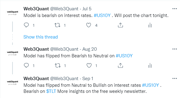 Last week the model also flipped from neutral to bullish on the interest rates (US10Y).