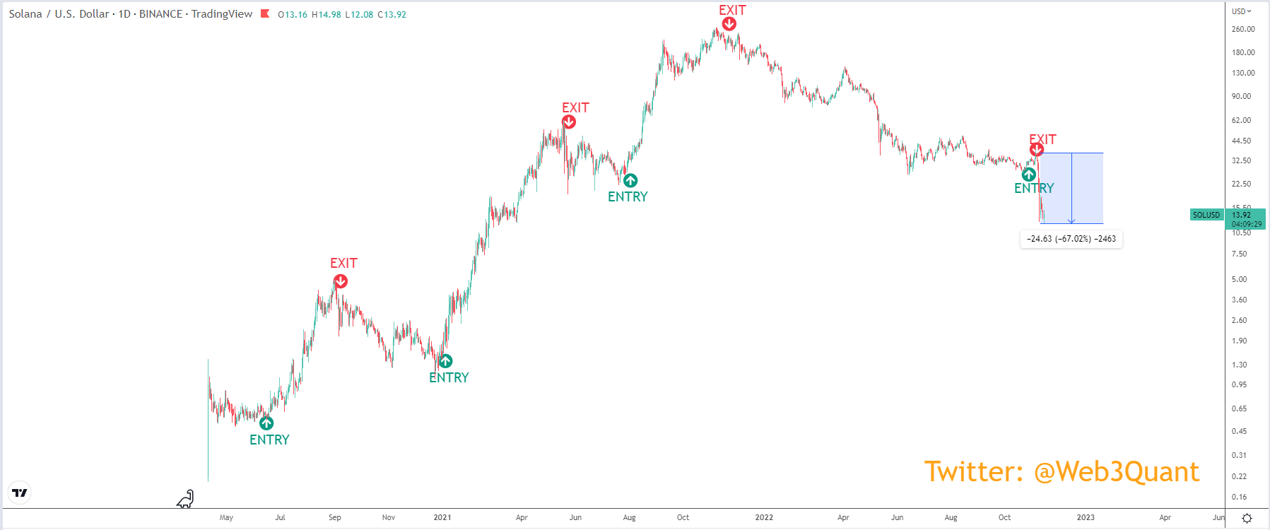 Model did very well to exit $SOL even before the whole FTX news broke and the carnage began as mentioned in last week's update. SOL is down -67% since then.