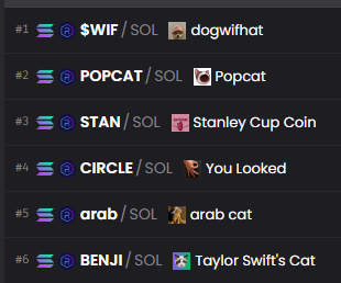 among other memes CIRCLE & STAN are also looking very strong while momentum in wynn is fading.