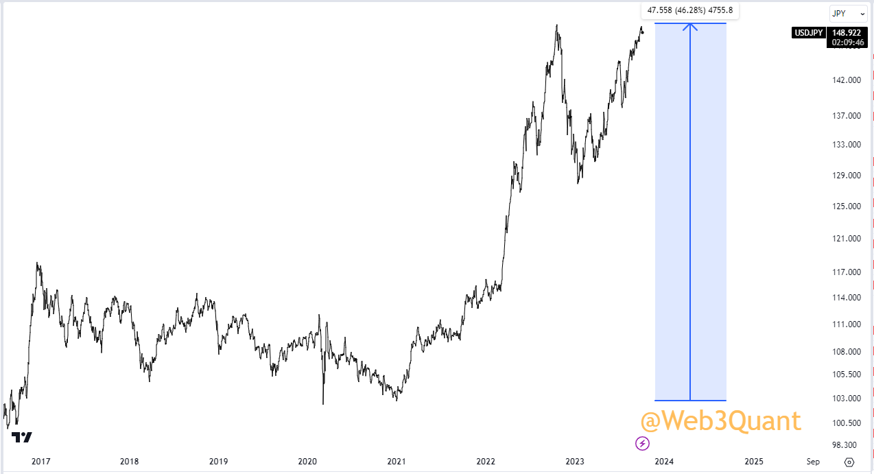 As you can see USDJPY has gone on a tear. Its up 45%. That's crazy in forex terms.